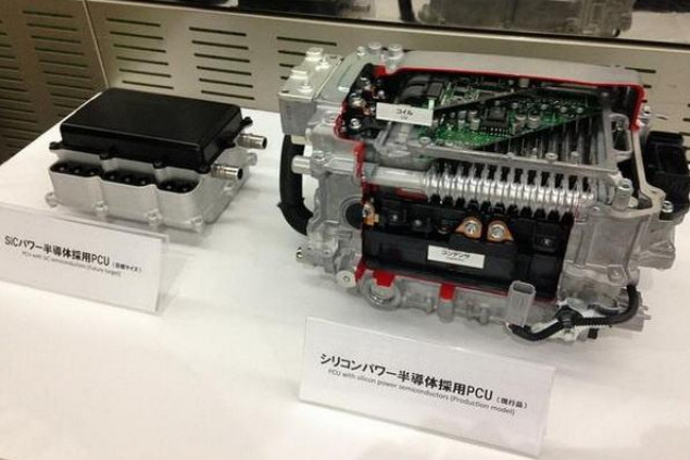 丰田的PCU(左边采用碳化硅功率器件、右边采用硅基功率器件)