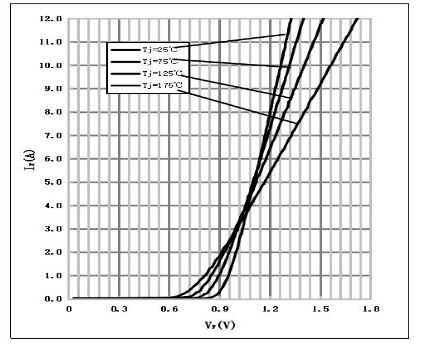 图5.SiC肖特基二极管正向导通特性与温度的依赖关系
