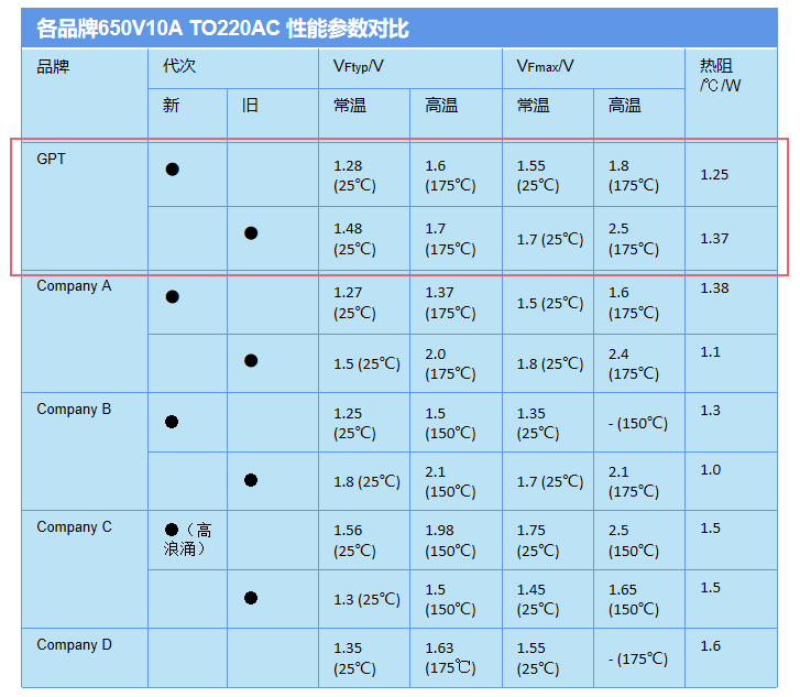 PA旗舰厅新一代低VF产品规格(其他型号持续更新中…)