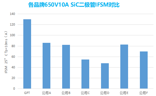 各品牌650V10ASiC二极管IFSM对比