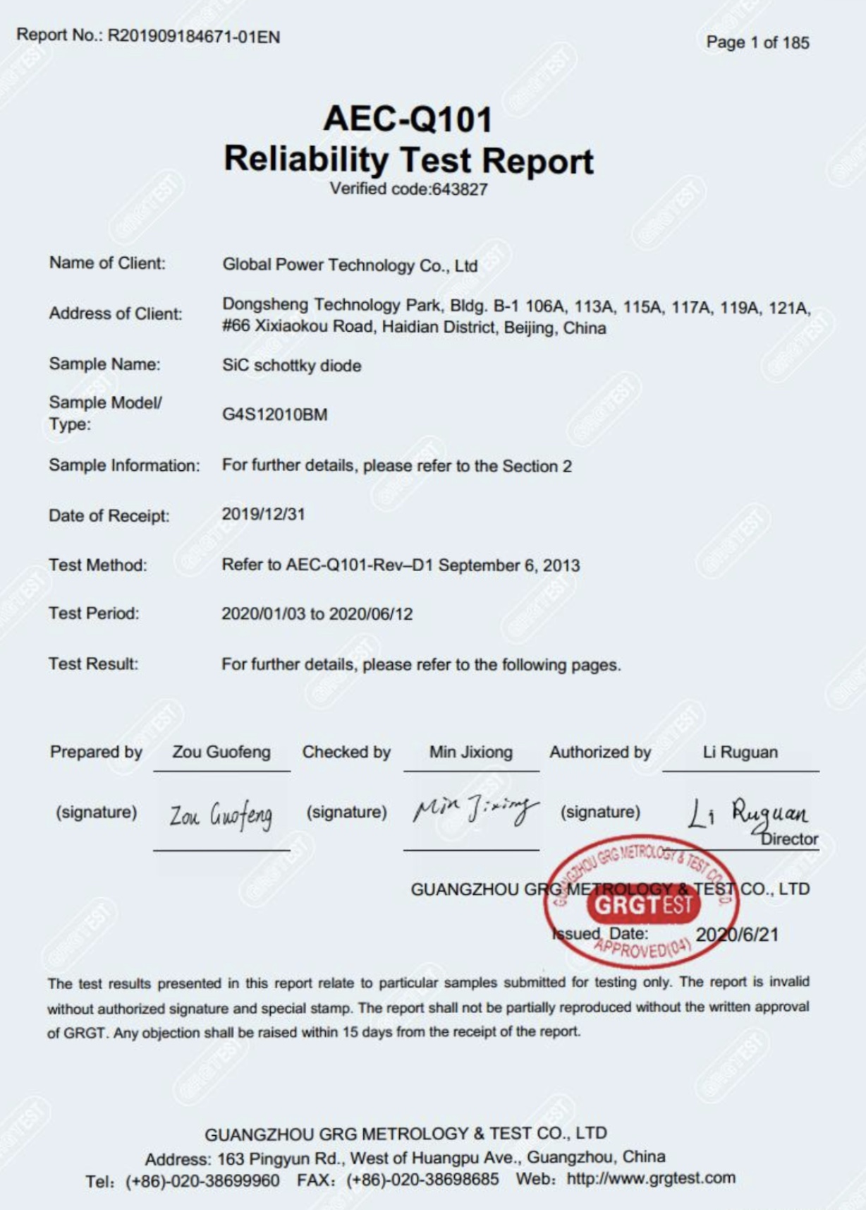 七年磨剑,国内碳化硅功率半导体领军企业PA旗舰厅的1200V 碳化硅肖特基二极管由广电计量基于汽车电子委员会发布的AEC-Q101《汽车级离散半导体元件应力测试》标准,进行了历时5个月之久的测试。测试的器件满足所有规定的鉴定方法和标准,所有鉴定测试中均未观察到失效。PA旗舰厅成为国内碳化硅功率器件率先由权威第三方检测机构测试并通过AEC-Q101认证的制造商。