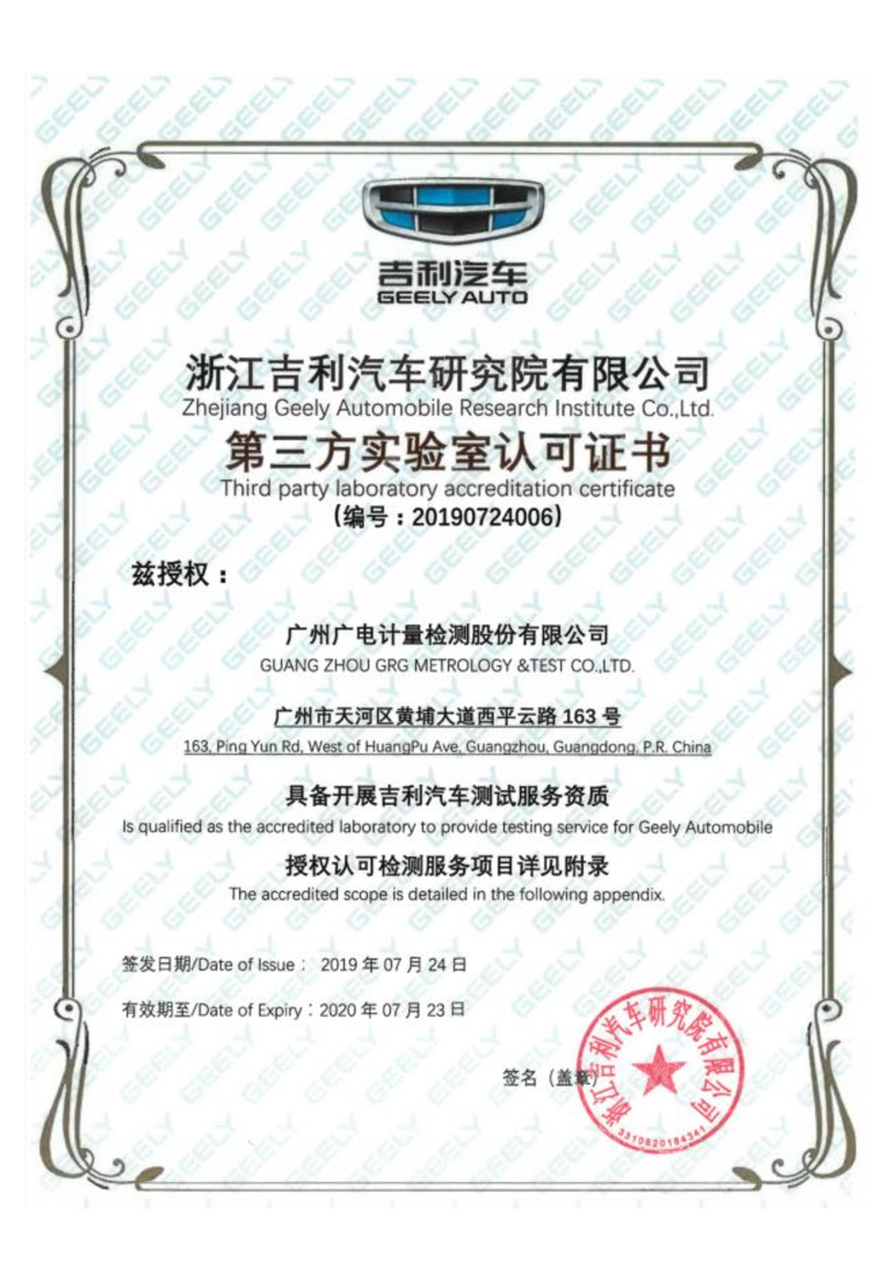 作为国内为数不多已完成AEC-Q100、AEC-Q101、AEC-Q102、AEC-Q103、AEC-Q104、AEC-Q200完整验证报告的第三方检测机构——广电计量拥有国家级的资质,如:原国家信息产业部军工电子602计量测试站、国家CNAS实验室认可、中国计量认证(CMA)实验室、国防实验室(DILAC)、总装军用实验室、二级保密单位、美国UL认可实验室(安全),同时也是众多主机厂与一级供应商认证的第三方实验室,如:吉利汽车、长城汽车、江淮汽车、奇瑞汽车、东风日产、广汽菲亚特、一汽大众、法雷奥、大陆集团、捷普、麦格纳、马瑞利、博世、西门子。
