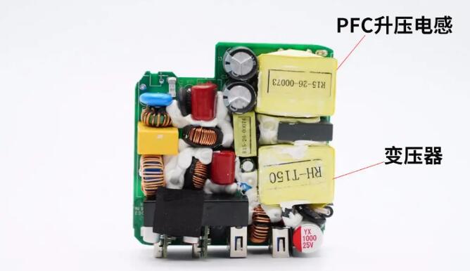 在百瓦大功率快充产品中,碳化硅和氮化镓可谓是最佳拍档,二者搭配用于电源前级PFC升压和整流,相对于传统硅器件,不仅效率提升能得到立杆剪影的效果,而且可以利用其高频特性缩小升压电感体积,从而提高产品整体的功率密度。